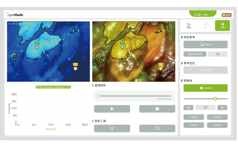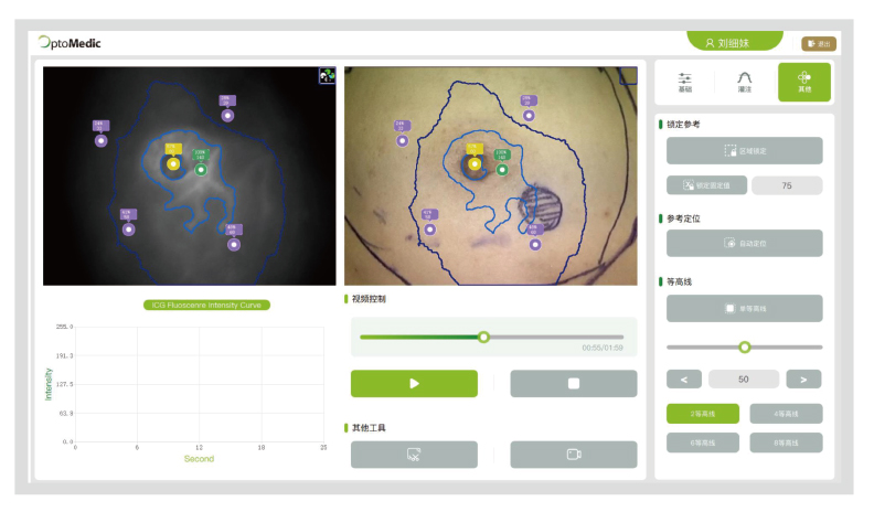 測量甲狀旁腺和周邊組織的熒光強弱關系,,,,,,,,統計相對百分比;;;;;;通過軟件的等高線功效,,,,,,,,圈出旁腺位置,,,,,,,,取代肉眼判斷旁腺。。。。。。。。