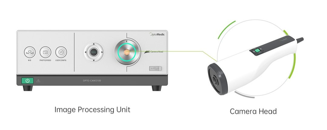 The end of camera head, integrated with LEDs, can be used immediately after connection with the image processing unit without the need for an additional light source.
